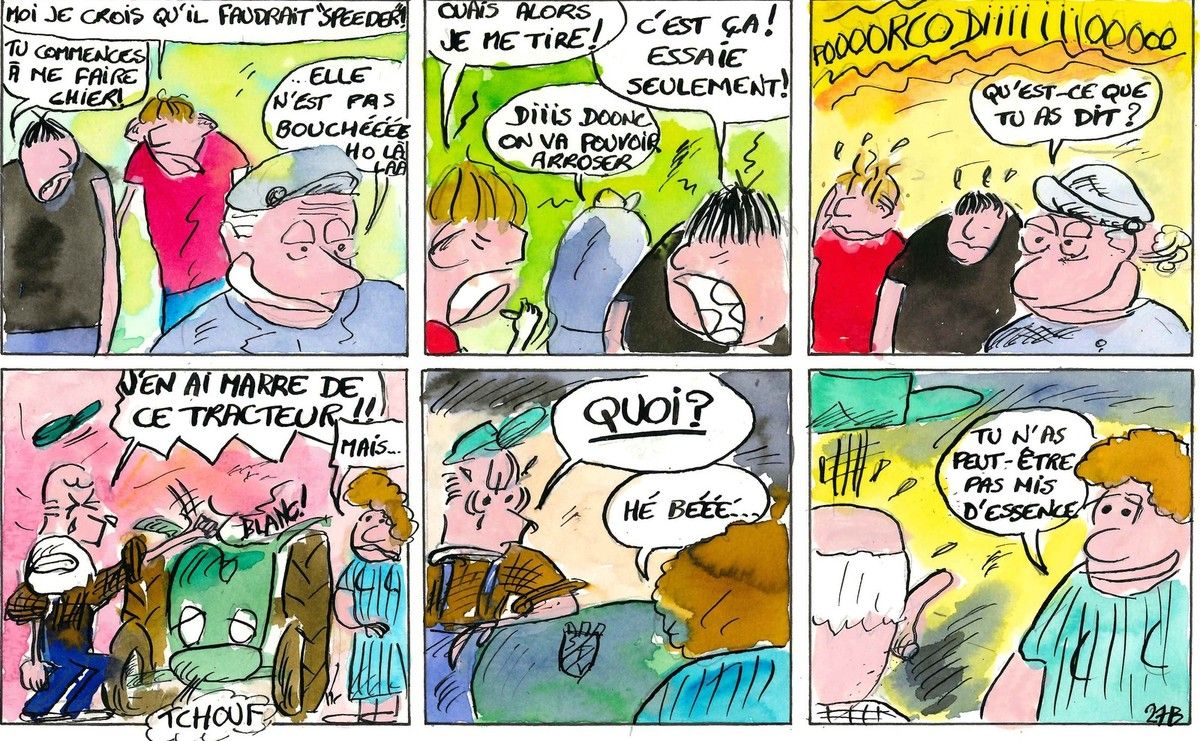 Porcocan BD rurale, lot et garonne, paysans , famille immigrés italiens, tracteurs et moissonneuses anciens Société Française Vierzon 201 et 204, orge blé